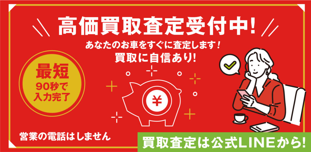 輸入車国産車高価買取査定岐阜のダブルワンモータースへぜひご相談ください。年式車種に応じた丁寧な査定で、満足いただける価格をご提示させていただきます。もちろん現金でのお支払いも可能!公式LINEからお問合せいただくと便利です。見積額ご案内後の執拗な営業等はおこなっておりませんので、公式ラインからいつでもお気軽にお問合せください。()
